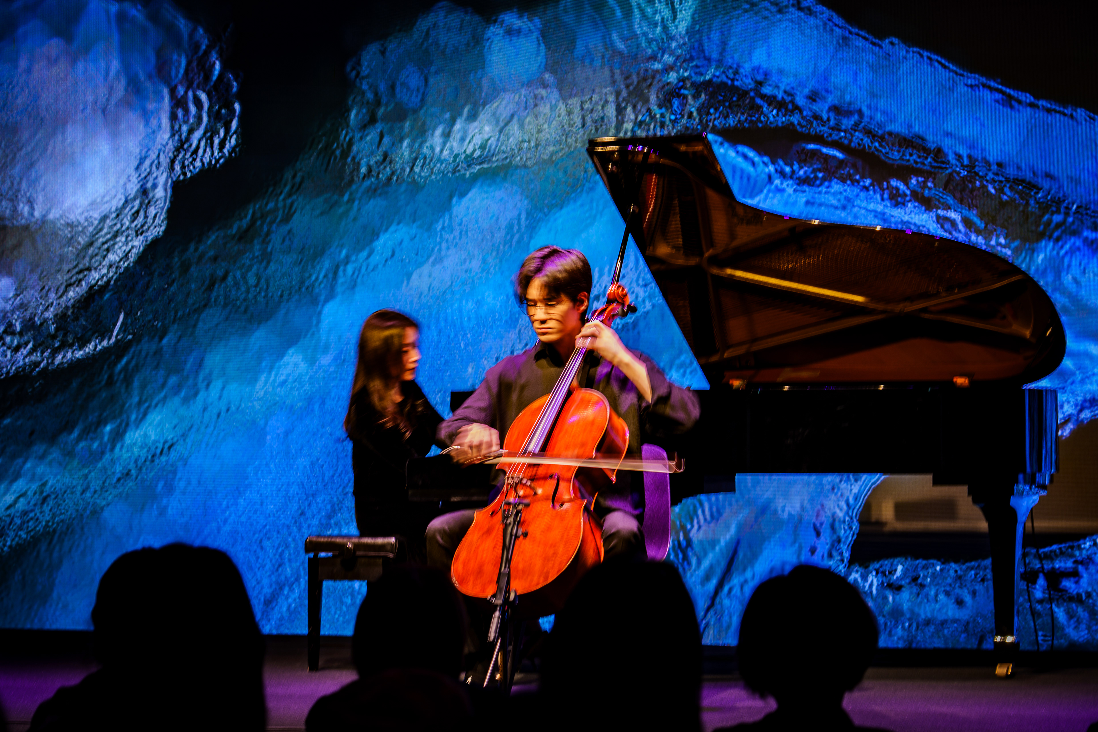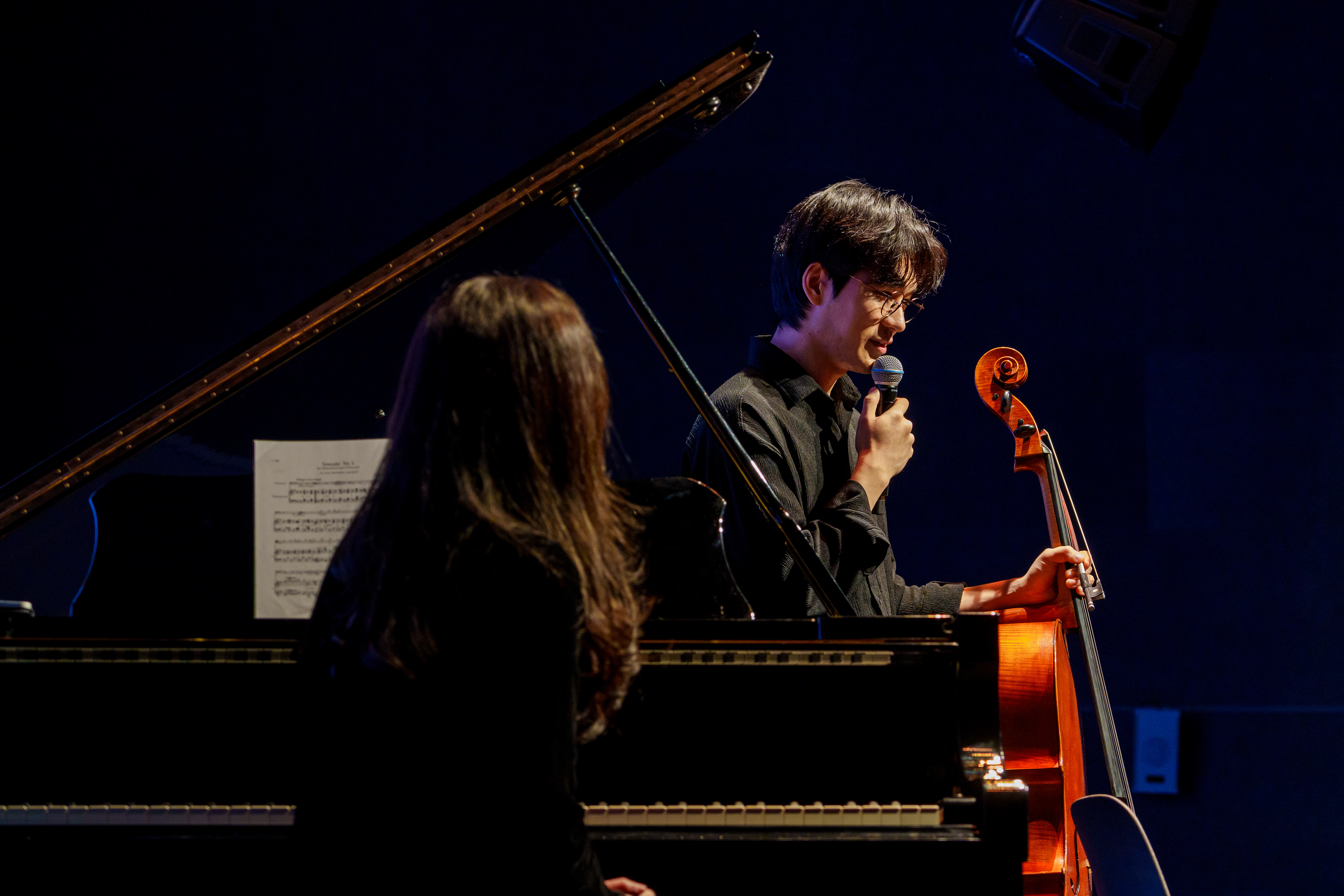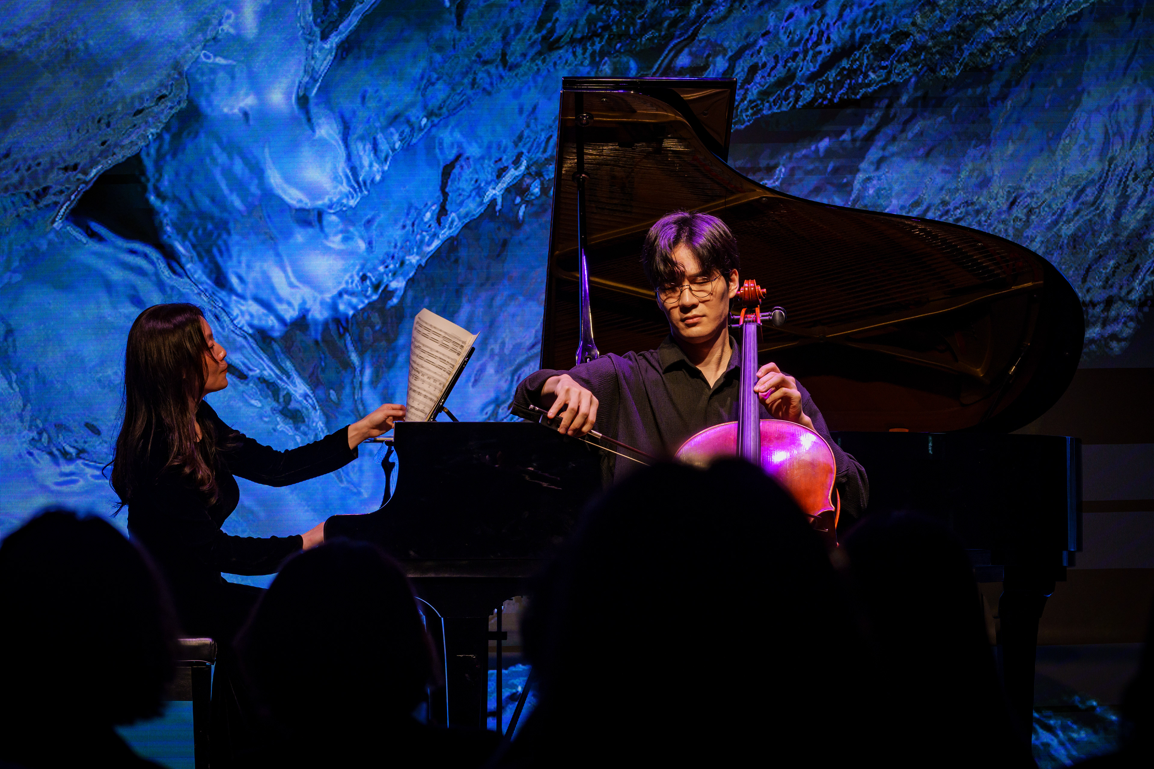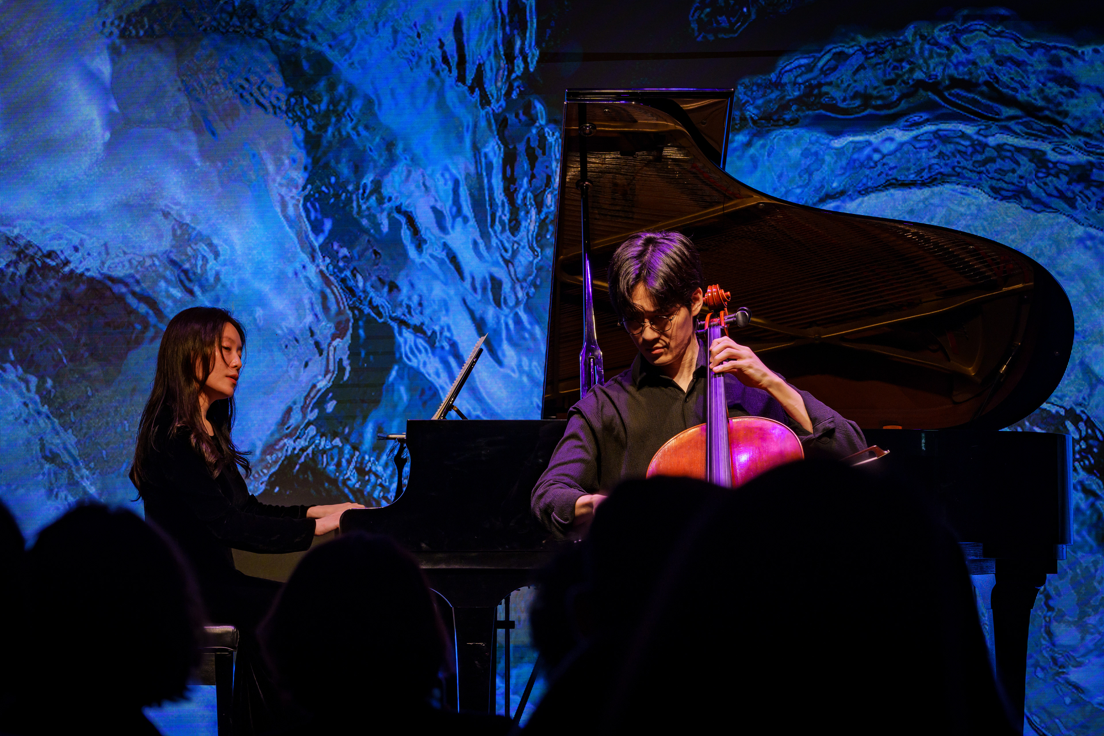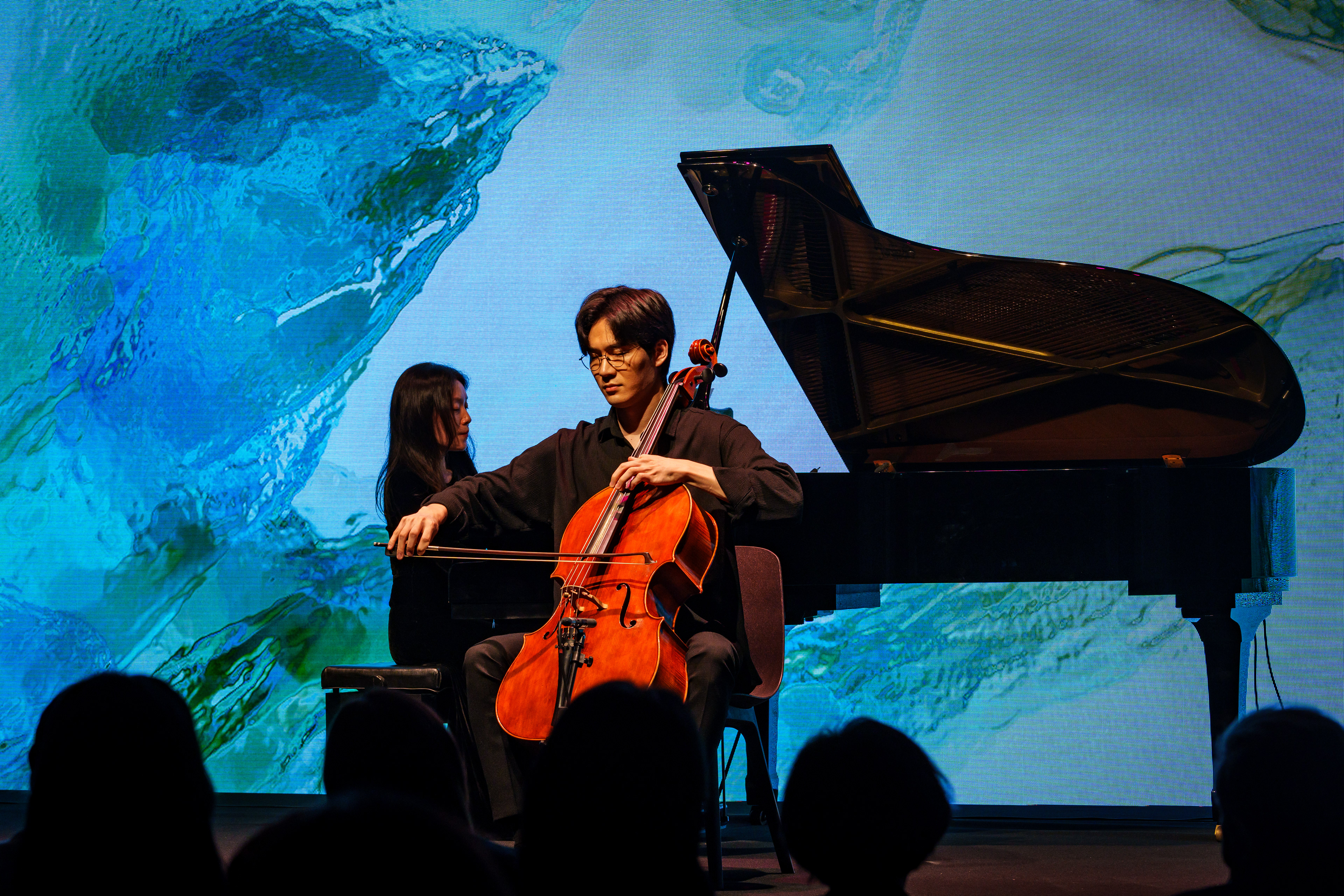 In the first week of October, I collaborated on a classical performance with cellist Park Geon-woo and pianist Choi Han-gyeol, integrating audio-visual elements. This concert featured romantic compositions by Schubert and Bach, perfect for the autumn ambiance. I crafted real-time graphics using the beautiful sounds they performed, embodying my identity as an artist who draws with sound.